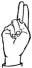 На ћирилици написано ЈЕЛИСАВЕТА ГРУБНИЋ састоји се из 17 слова [?]. Исписано ћириличном једноручном азбуком за глувонеме:
